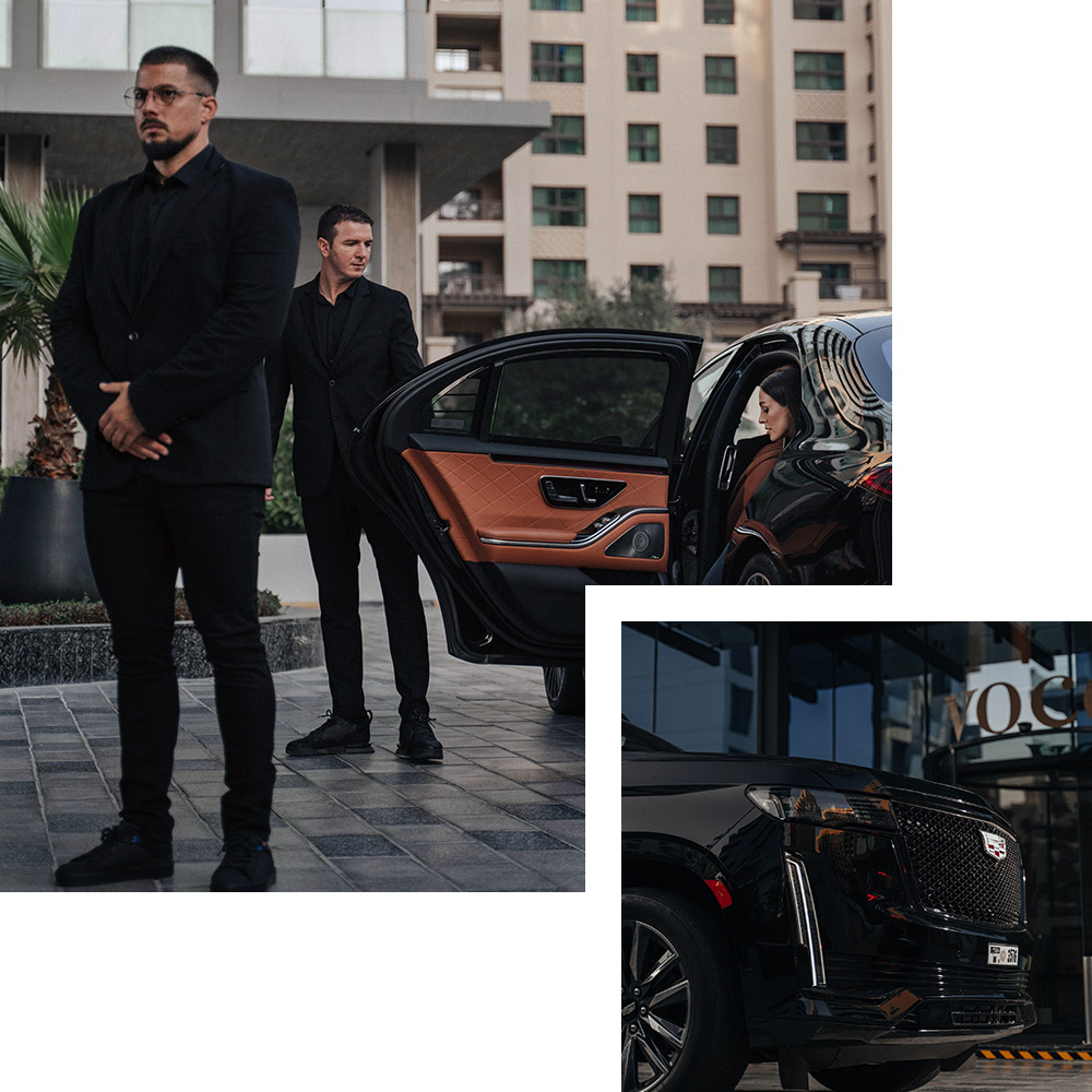 Your Premier Security & Chauffeur ServiceWelcome to a world where your safety & convenience are our top priorities.Traveling Securely & Peace of MindYour journey, our commitment to excellence and protection.Secure Experiences, Seamless JourneysWe redefine safety and convenience every mile of the way.Personalized Travel & Protection Tailored For YouYour trusted partner in premium chauffeur services and top-tier security solutions.Elevating Luxury Travel & ProtectionWhere your safety, comfort and peace of mind is priority number 1.